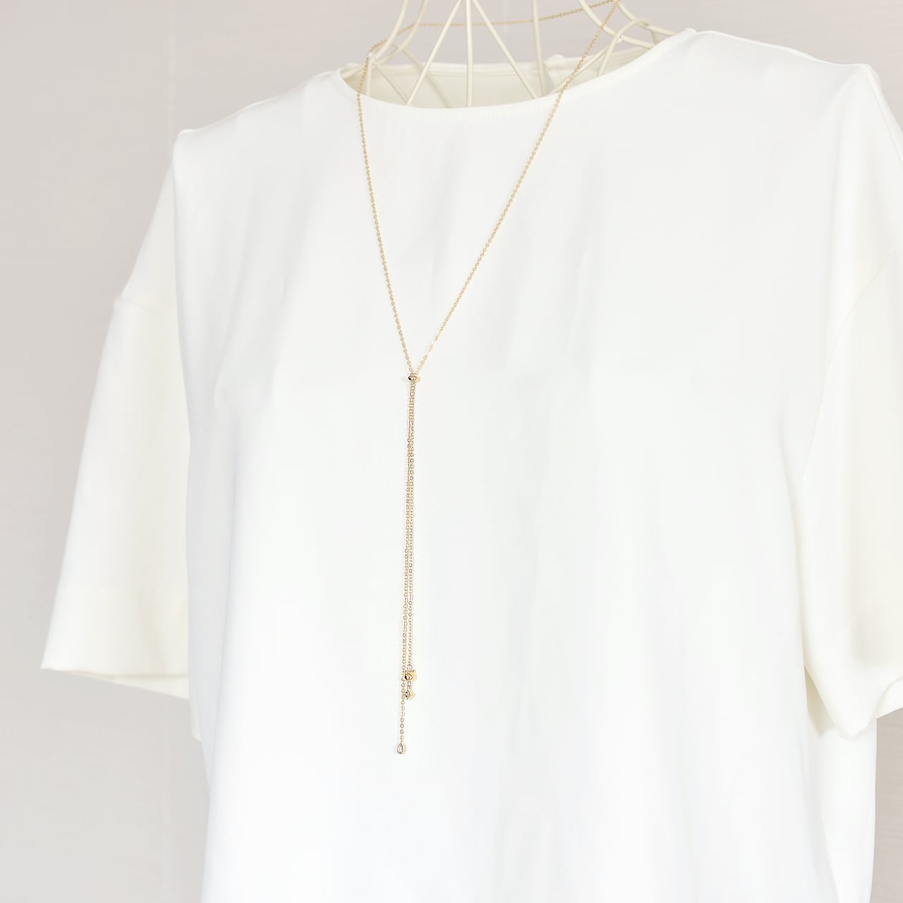ゴールドの猫モチーフと繊細なチャームが華やかさを添える、長さ調整可能なロングネックレスです。スライド式の調整パーツにより、お好みの長さでスタイリングが可能。シンプルかつエレガントなデザインは、日常使いから特別なシーンまで幅広く活躍します。