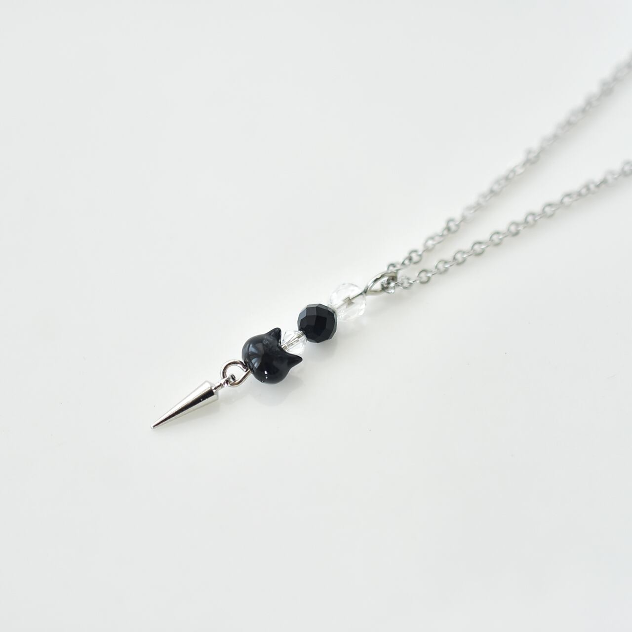 オニキス×水晶×黒猫の組み合わせが魅力的なエレガントなネックレス。